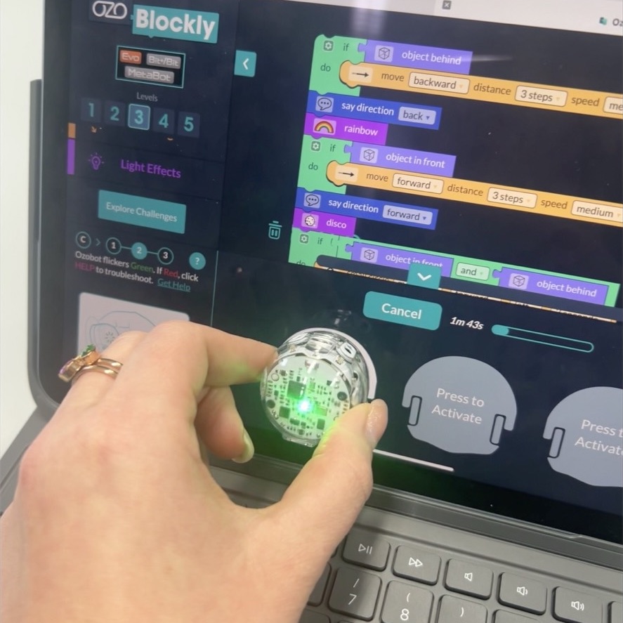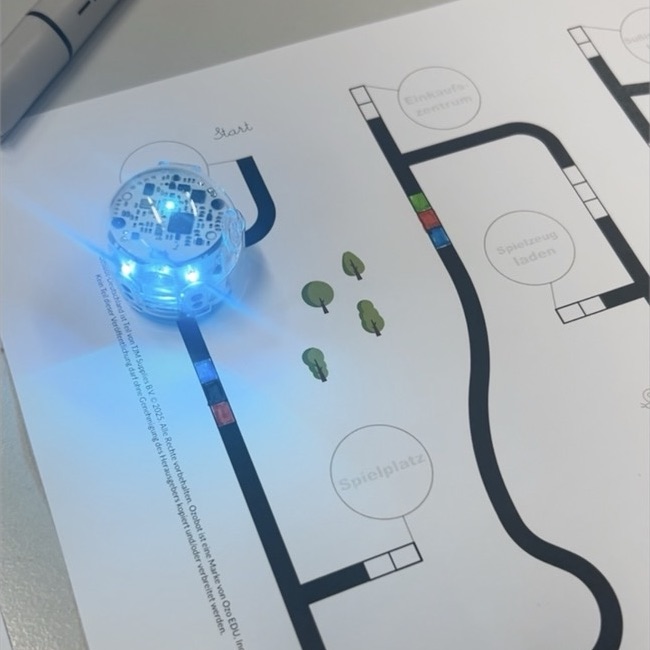 Die Lehrkräfte schlüpften selbst in die Rolle der Schülerinnen und Schüler und probierten sowohl analoge als auch digitale Aktivitäten aus – darunter das Steuern von Ozobots und erste Schritte in der Swift-Programmierung. Ausgestattet mit zwei Materialmappen ging es anschließend mit dem Bus wieder zurück nach Eggenfelden, hoffentlich inspiriert und motiviert für eigene informatische Unterrichtseinheiten.